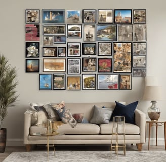 a) A gallery wall filled with a mix of different sizes and styles. (4 points)